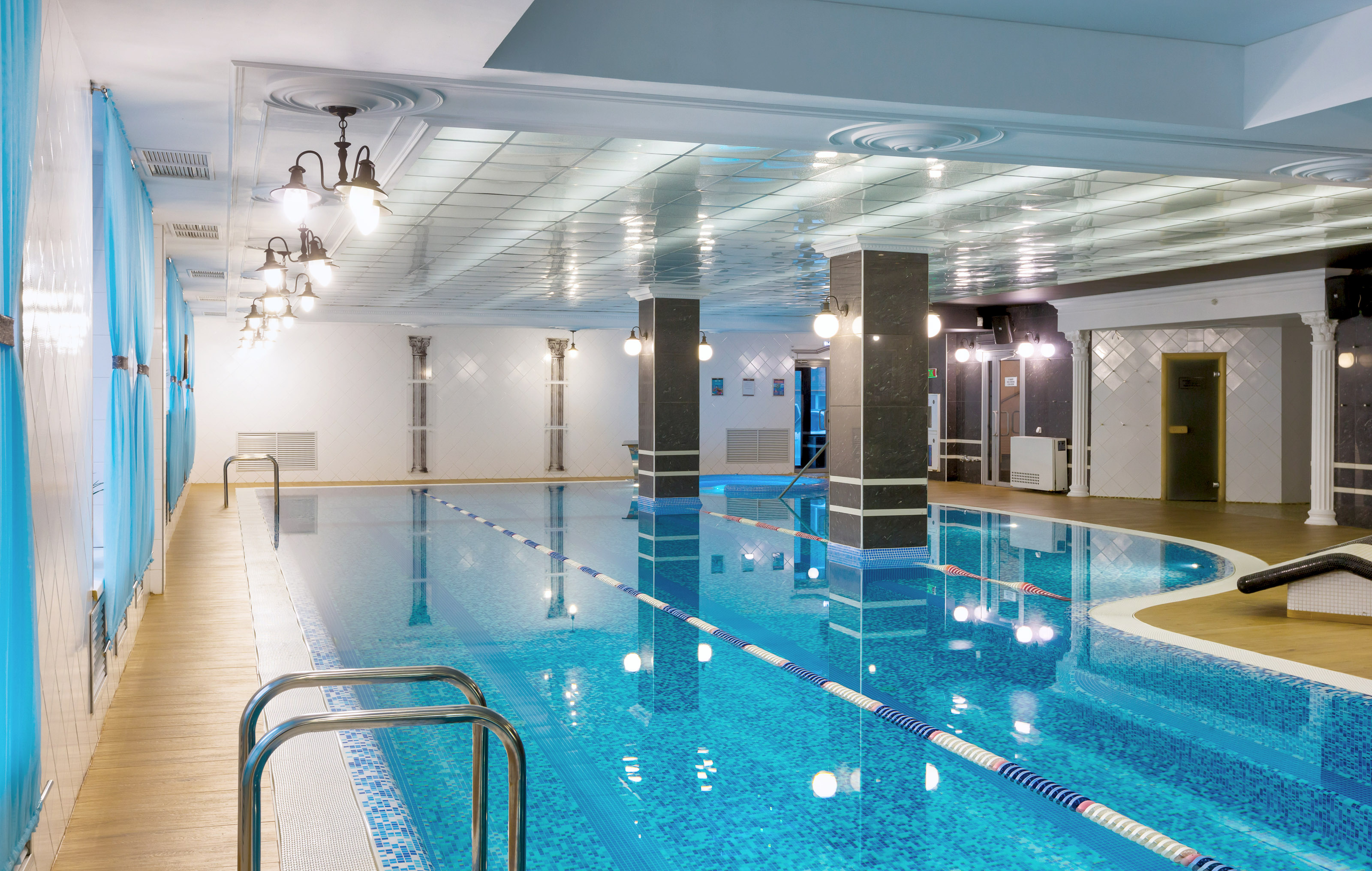 Большой бассейн. 25 метров для индивидуальных и групповых занятий, после которых можно отдохнуть в сауне или хамаме.